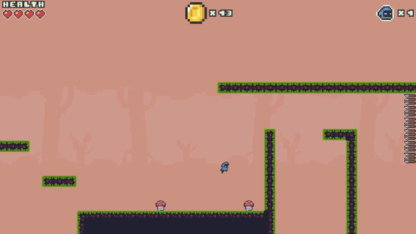 The idea behind this demo was to create a platformer with movement mechanics similar to the Megaman X series. In order to make it feel complete, I wanted to have platforming, levels, enemies, traps, health, lives, and a collectible used to gain lives. I also wanted to add visuals, animations, and sounds for presentation and conveying information to the player about the gameplay, thus making the demo feel much more complete (and a lot more challenging).